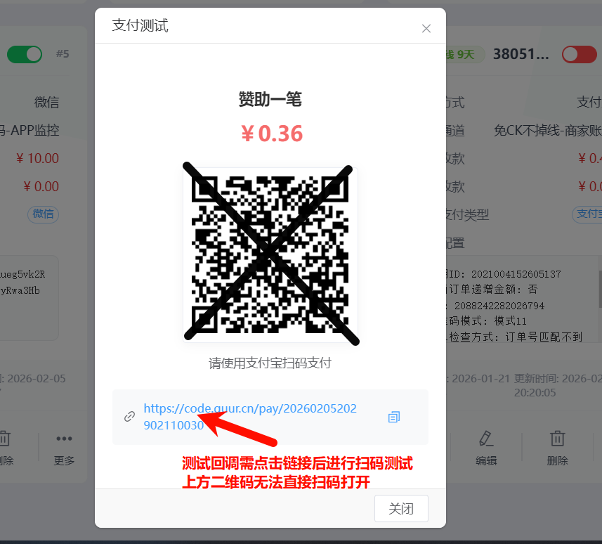 支付测试需点击下方的链接再进行扫码测试、直接扫这个码无法直接打开的。