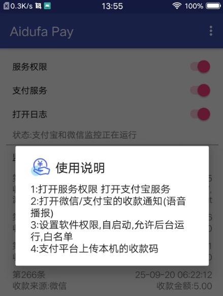 监控软件监控的是手机顶部刘海的收款到账通知并回调。自行测试下是否监控到并回调,不回调就是没设置好。