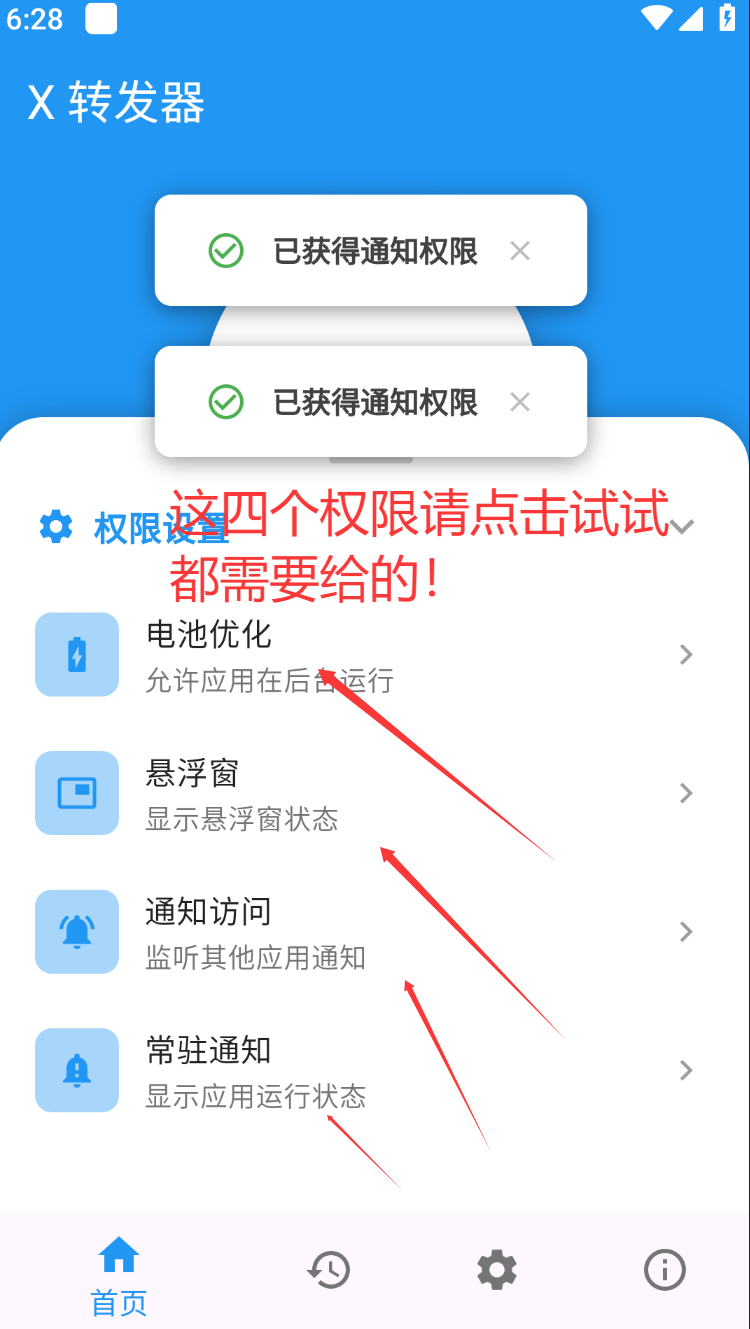 如果无法搜索应用则需在手机设置打开 X转发器 应用信息权限管理 打开获取应用列表权限